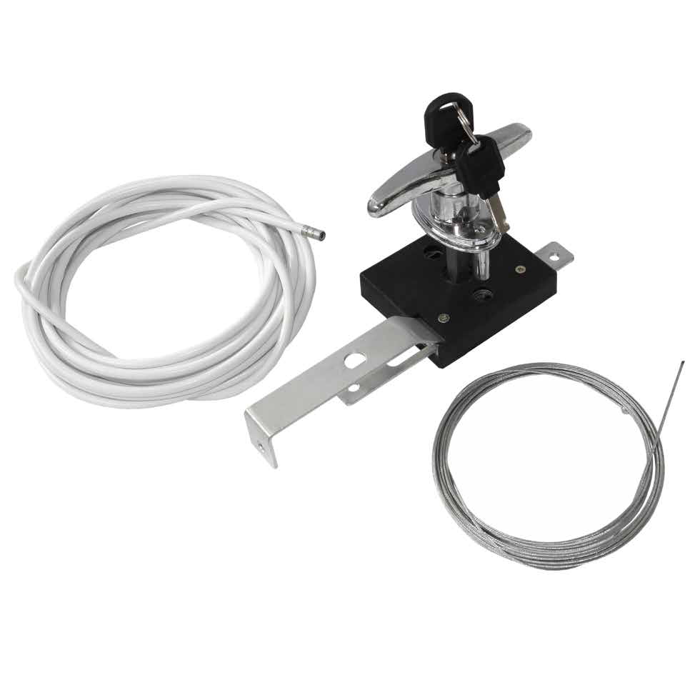 Преимущества: современный внешний вид ручки органично сочетается с любым дизайном полотна ворот. Надежный механизм замка гарантирует безупречную работу на протяжении всего срока эксплуатации. Трос (1,25 x 4 700 мм) и оплетка (4,62 x 4 520 мм) обладают возможностью регулировки длины.