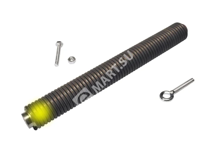 Балансировачная пружина в автоматическом шлагбауме используется в качестве устройства, поддерживает и обеспечивает плавное опускание стрелы, препятствуя ударам о стопорные винты. Сила растяжения пружины в компании Came условно обозначается тремя цветми - зеленым, средним и красным, что обозначает уменьшение силы растяжения. Также на растяжение пружины влияет диаметр витков, который в может быть равен 55 мм, 50 мм и 40 мм. Балансировочная пружина желтая применяется в моделях шлагбаумов со стрелой от 2 до 3 метров, а также при установке на стрелу дополнительных средств безопасности и с целью обозначения искуственного препятсвия. В комплект входят натяжные болты, на концах которых предусмотрены кольца для крепления к штатным элементам кострукции.