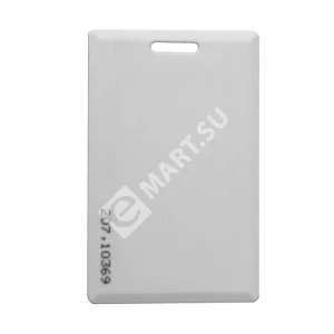 TK4100 Clamshell карта с прорезью – электронная бесконтактная карта для систем контроля и управления доступом. На карте нанесен код, который облегчает её занесение в базу данных при отсутствии специального считывателя. Обычно используется для ношения на специальной ленте или на связке с ключами. Для персонализации карт данного типа можно использовать наклейку для ламинирования (паутч)