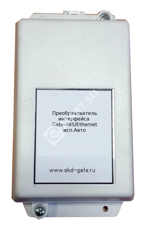 Специализированный преобразователь интерфейса Gate-Ethernet/Wiegand (Gate-485/Ethernet исп.Авто) используется для подключения серверов распознавания (автономеров) к контроллеру СКУД по спецпротоколу. Преобразователь обеспечивает прием кодовой посылки по сети Ethernet от сервера распознавания, декодирование полученной посылки и выдачу кода идентификатора на требуемый Wiegand вход контроллера СКУД.