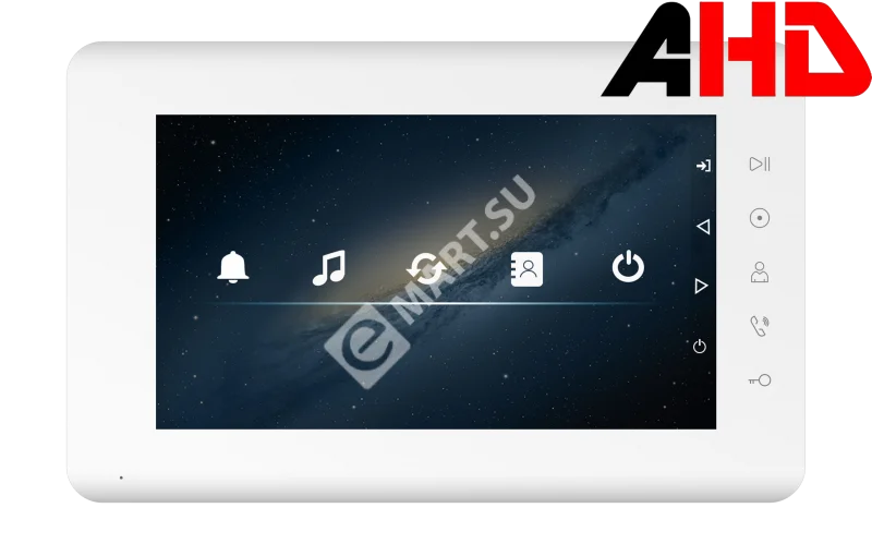 Адаптированный для цифровых подъездных систем монитор цветного видеодомофона TFT LCD 7" 800x480, AHD/CVI/TVI/CVBS, Hands-Free, 1 подъездная вызывная панель, 1 индивидуальная вызывная панель, 2 камеры. Питание 220В.