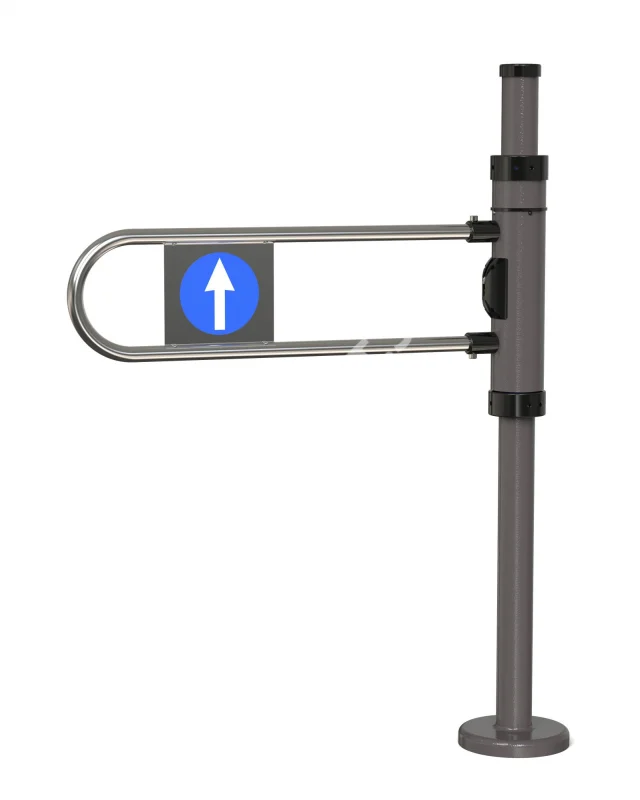 Ключевая особенность калитки К10 — ее универсальность. Благодаря двум фиксирующим устройствам можно выбрать любой режим работы: «проход закрыт», односторонний проход на вход или выход, двухсторонний проход, а также освободить проход, зафиксировав дугу в крайнем открытом положении. Дуга вращается вокруг вертикальной оси стойки и под действием пружины автоматически возвращается в положение перекрытия прохода.