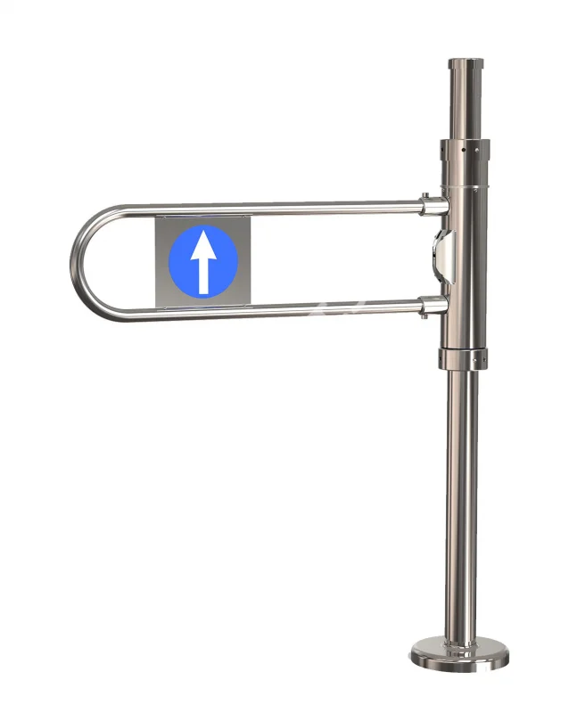 Ключевая особенность калитки К10 — ее универсальность. Благодаря двум фиксирующим устройствам можно выбрать любой режим работы: «проход закрыт», односторонний проход на вход или выход, двухсторонний проход, а также освободить проход, зафиксировав дугу в крайнем открытом положении. Дуга вращается вокруг вертикальной оси стойки и под действием пружины автоматически возвращается в положение перекрытия прохода.