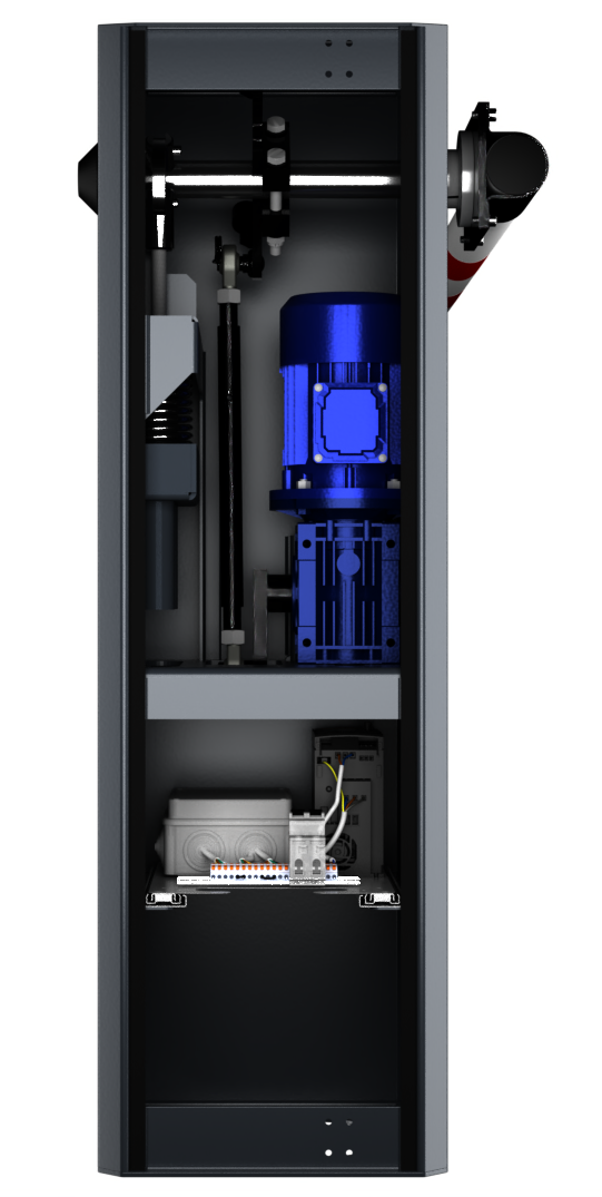 Тумба шлагбаума Миг-4 с: приводом, БЭ(IP54), ПУ 1 кн., СЛ, крепление стрелы по центру, частотным преобразователем