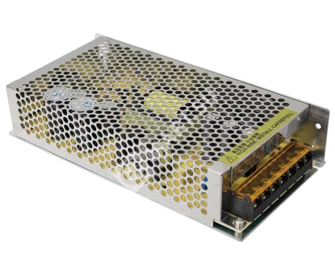 Источник питания стабилизированный 12В 10А, регулировка выходного напряжения, защита от КЗ, перфорированный корпус IP20 Габариты: 198×110×43 мм
