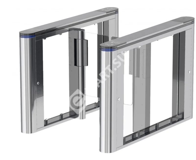 Блокпост РСП 800 — это преграждающая конструкция, имеющая створки, которые закреплены на вертикальных валиках и могут распахиваться как в одну сторону, так и в другую. Распашной турникет оборудован функцией «Антипаника». Эта функция автоматически освобождает проход в экстренных случаях или при сбое электропитания, также она может быть активирована с пульта ДУ.