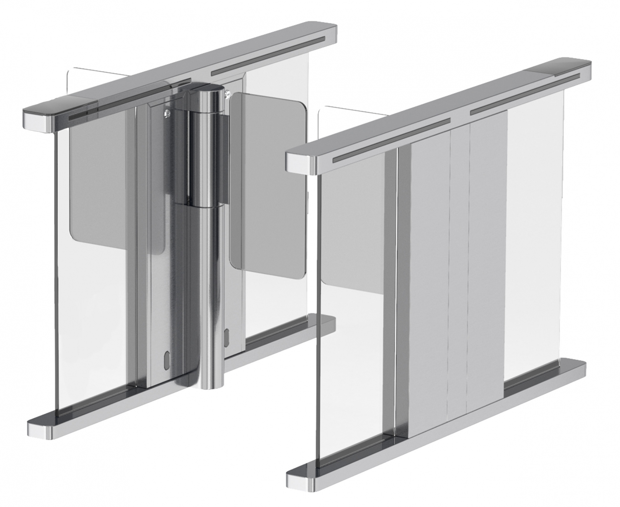 Блокпост РСП 900 — это преграждающая конструкция, имеющая створки, которые закреплены на вертикальных валиках и могут распахиваться как в одну сторону, так и в другую. Распашной турникет оборудован функцией «Антипаника». Эта функция автоматически освобождает проход в экстренных случаях или при сбое электропитания, также она может быть активирована с пульта ДУ.