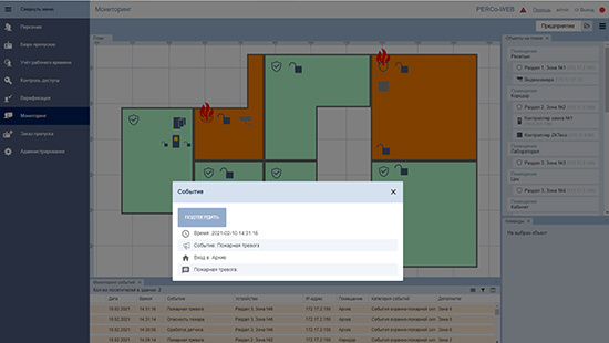 мониторинг состояния и управление устройствами ОПС «Болид» в интерфейсе системы контроля доступа PERCo-Web