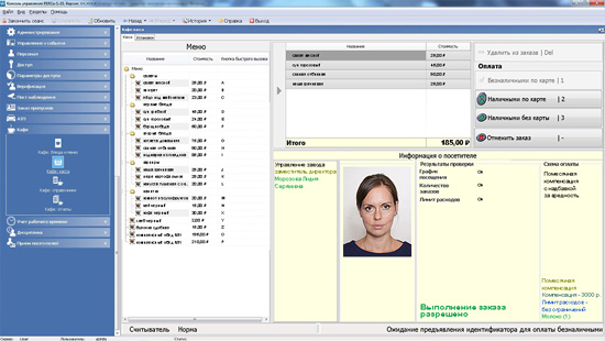 Модуль позволяет полностью исключить при оплате питания наличные расчеты. Это повышает удобство и скорость обслуживания посетителей. При этом все сделанные сотрудниками заказы (дата заказа, полный перечень блюд, их стоимость) запоминаются в базе данных.