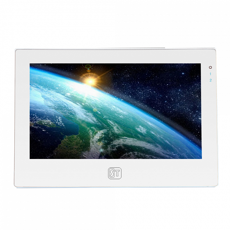 ST-M202/7 (TS/SD) БЕЛЫЙ, Дисплей: 7” TFT LCD, цветной, сенсорный, Разрешение: 1024*600, Поддерживаемые стандарты видео: CVBS/TVI/CVI/AHD(720Р/1080P), Интерком: Да, Режим «не беспокоить»: Да, Запись фото/видео: Да, Слот под SD карту: Да (до 128 Гб(класс ? 10)), Количество мелодий звонка : 10, Автоответчик: Да(с SD карт.), Функция фоторамки: Да(с SD карт.), Возможности подключения: До 2х вызывных панелей, до 2х видеокамер,до 6и мониторов*, Напряжение питания: АС 100-240В (встроенный БП 12V1A), Способ монтажа : Накладной (монтажная пластина), Рабочая температура : -10°С...+60°С, Мах. коммутируемые ток и напряжение для замка (ворота): 60V/40A, Пластик, 185х130х23мм