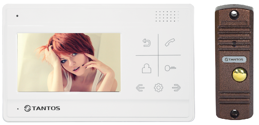 Tantos LILU kit - Комплект бюджетного домофона. В комплекте: Монитор видеодомофона цветной с 4,3" дисплеем, Hands-free, управление сенсорными кнопками, формат CVBS (PAL/NTSC). Питание 14,5В, адаптер 220В/14,5В в комплекте. Вызывная панель антивандальная, с матрицей видеокамеры высокого разрешения, формат CVBS (PAL). Стандартная четырех проводная схема подключения.