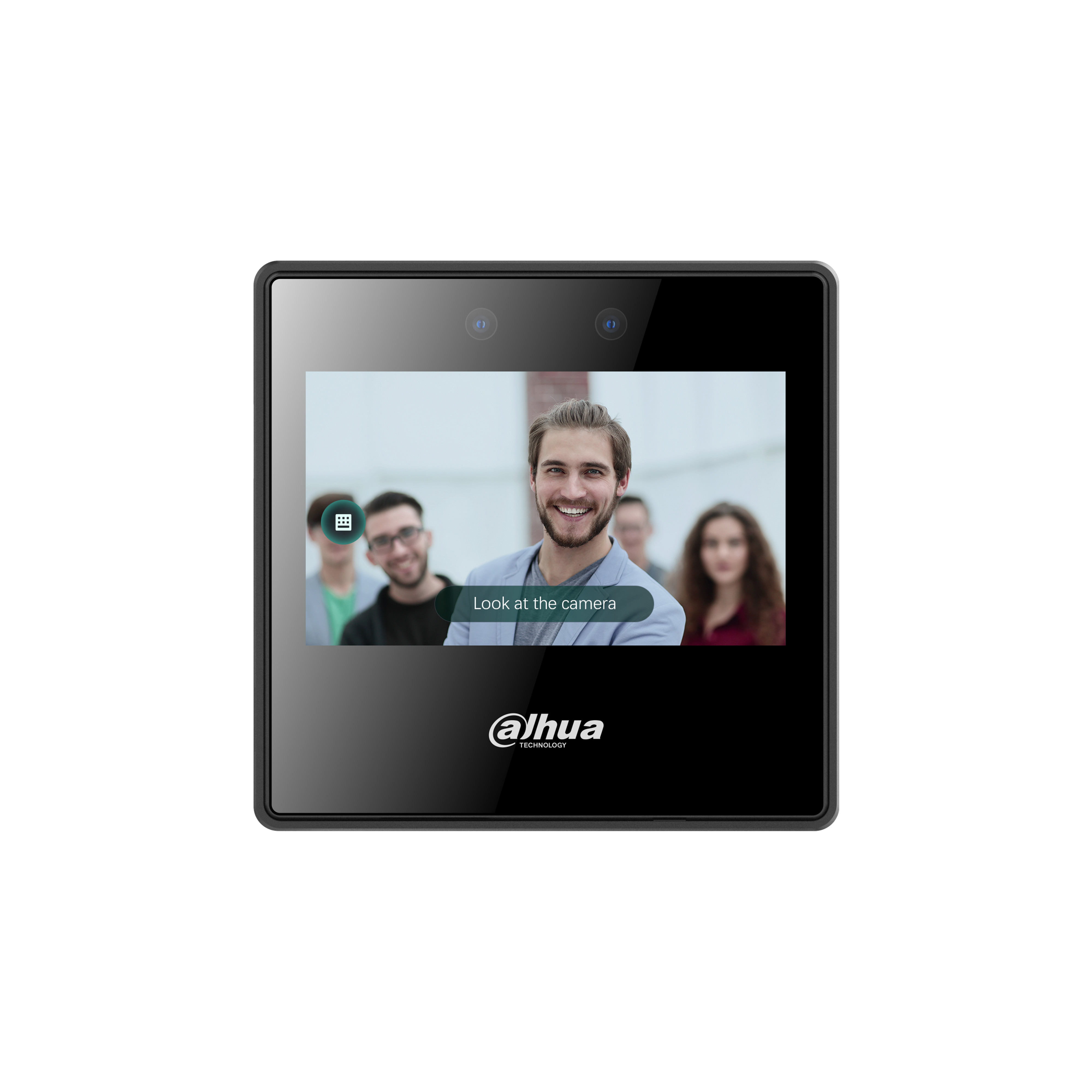 Терминал доступа Dahua DHI-ASA3223A-W с распознаванием лиц оборудован портом USB 2.0, ЖК-дисплеем с диагональю 4.3", разрешением 480×272, широкоугольной двойной камерой с расширенным оптическим диапазоном, матрицей CMOS разрешением 2 Мп, ИК-подсветкой.
