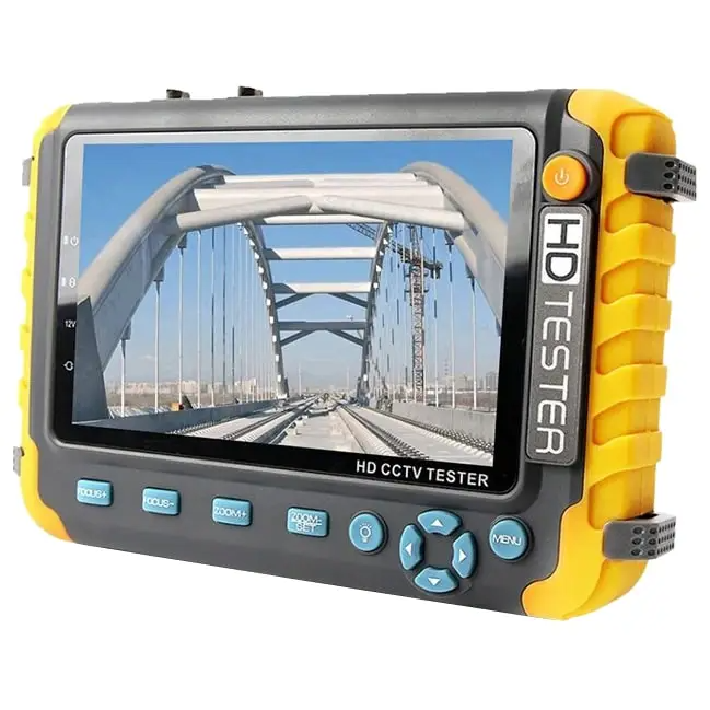 Expert-5G V3 – видеотестер (монитор монтажника) Hunter. Позволяет подключать и настраивать аналоговые камеры с максимальным разрешением до 8Мп следующих форматов: CVBS, AHD, TVI, CVI. Также у тестера присутствуют HDMI и VGA входы с максимально поддерживаемым разрешением 1920×1080 pix, что делает возможным подключить к нему видеорегистратор для отладки. Можно получить изображение c камеры и подать на неё питание 12В, проверить UTP кабель, работу микрофона, управлять PTZ камерой, зарядить мобильный телефон или любое другое устройство через USB порт. Кроме этого, у тестера присутсвует BNC выход, который генерирует тестовую таблицу для проверки НЧ мониторов.