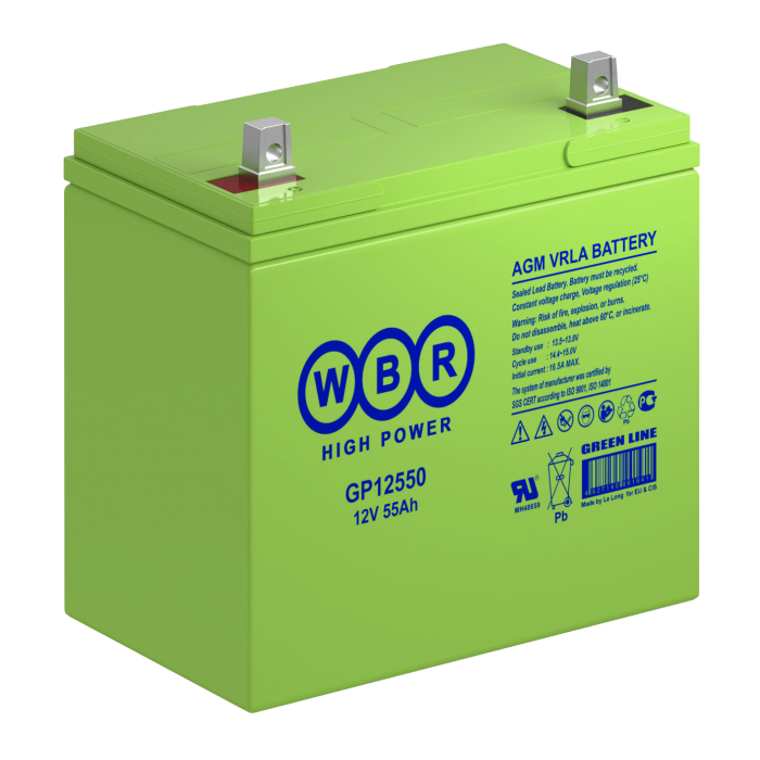 Аккумулятор WBR GP12550 - герметизированная, выполненная по технологии AGM, аккумуляторная батарея общего применения со сроком службы до 8 лет в буферном режиме или 260 циклов заряда-разряда в циклическом режиме при 100% разряде. Эта высокоэффективная, перезаряжаемая батарея, не требующая обслуживания в течение всего срока службы.