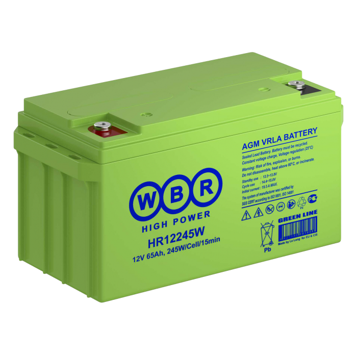 Аккумулятор WBR HR12245W - герметизированная, выполненная по технологии AGM, аккумуляторная батарея общего применения со сроком службы до 8 лет в буферном режиме или 260 циклов заряда-разряда в циклическом режиме при 100% разряде. Эта высокоэффективная, перезаряжаемая, батареи не требующая обслуживания в течение всего срока службы.