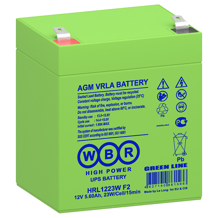 WBR серии HRL1223W F2 - герметизированные, необслуживаемые, VRLA аккумуляторы, изготовленные по технологии AGM, со сроком службы до 12 лет применяются для эксплуатации на коротких режимах разряда в системах бесперебойного питания ЦОД и другом технологическом оборудовании. Допускают до 300 циклов глубокого разряда.