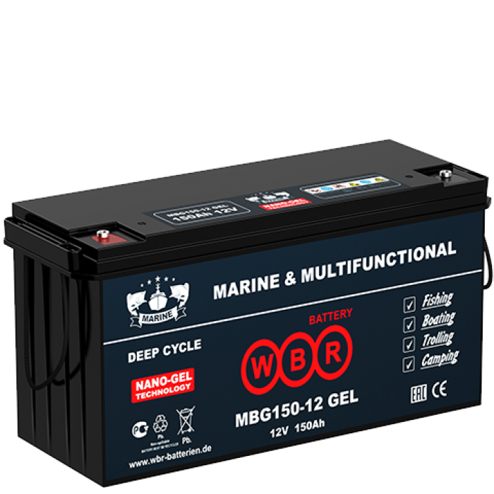 Аккумулятор WBR MBG150-12 - герметизированная, выполненная по технологии GEL, лодочная свинцово-кислотная аккумуляторная батарея. Обладает высоким качеством и надежностью, устойчива к глубоким разрядам и применяется для питания на яхтах, катерах и моторных лодках, а также возможны к применению как источники питания для электронасосов, эхолотов, осветительных приборов и другого вспомогательного оборудования.