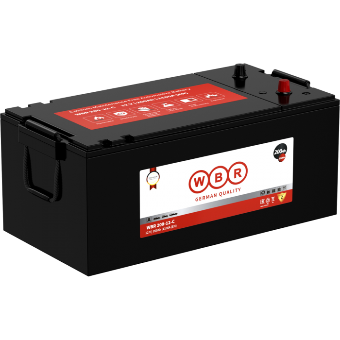 Аккумулятор WBR20012-С - стартерная необслуживаемая свинцово-кислотная аккумуляторная батарея. Обладает высоким качеством, надежностью, энергоотдачей и большим сроком службы. Эта аккумуляторная батарея успешно выдерживает конкуренцию со стартерными батареями других производителей и предназначена для использования в автомобилях, тракторной технике, запуска дизельных и бензиновых двигателей различной техники. Не требует долива воды на протяжении всего срока службы и соответствуют стандарту DIN: LBN2