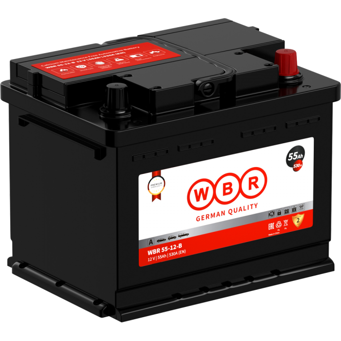 Аккумулятор WBR5512-В - стартерная необслуживаемая свинцово-кислотная аккумуляторная батарея. Обладает высоким качеством, надежностью, энергоотдачей и большим сроком службы. Эта аккумуляторная батарея успешно выдерживает конкуренцию со стартерными батареями других производителей и предназначена для использования в автомобилях, тракторной технике, запуска дизельных и бензиновых двигателей различной техники. Не требует долива воды на протяжении всего срока службы и соответствуют стандарту DIN: LBN2