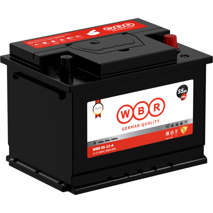Аккумулятор WBR5512-A - стартерная необслуживаемая свинцово-кислотная аккумуляторная батарея. Обладает высоким качеством, надежностью, энергоотдачей и большим сроком службы. Эта аккумуляторная батарея успешно выдерживает конкуренцию со стартерными батареями других производителей и предназначена для использования в автомобилях, тракторной технике, запуска дизельных и бензиновых двигателей различной техники. Не требует долива воды на протяжении всего срока службы и соответствуют стандарту DIN: LBN2