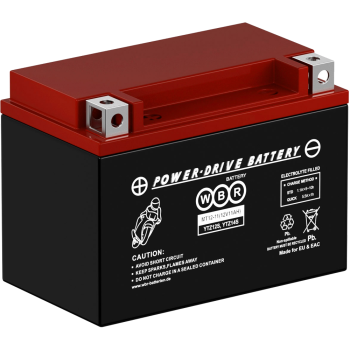 Аккумулятор WBR МТ12-11 - герметизированная, выполненная по технологии AGM, необслуживаемая (MF) стартерная мотоциклетная свинцово-кислотная аккумуляторная батарея. Обладает высоким качеством и надежностью. Она предназначена для запуска двигателя мотоциклов, скутеров, гидроциклов, квадроциклов, снегоходов и мотовездеходов. Батарея соответствует техническим характеристикам и является аналогом мотоциклетных аккумуляторных батарей YUASA моделей YTZ12S и YTZ14S.