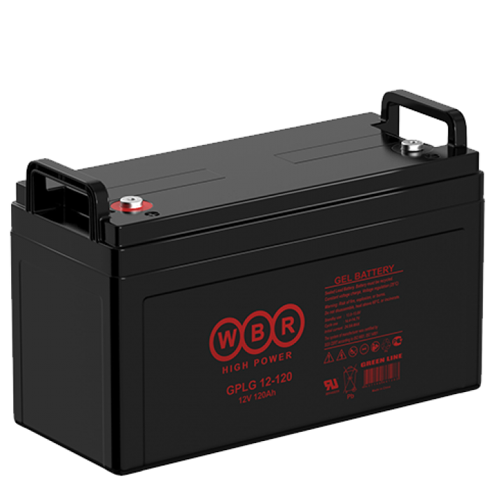 WBR GPLG12-120 - герметизированные, выполненные по гелевой (GEL) технологии, свинцово-кислотные аккумуляторные батареи общего применения со сроком службы 12 лет в буферном режиме или более 350 циклов заряда-разряда в циклическом режиме при 100% разряде. Эти высокоэффективные перезаряжаемые батареи не требуют обслуживания в течение всего срока службы. Основные области применения: источники бесперебойного питания (UPS), охранные и пожарные системы безопасности, оборудование телекоммуникации и электросвязи, аварийное освещение, телеметрическое, контрольное и другое оборудование.