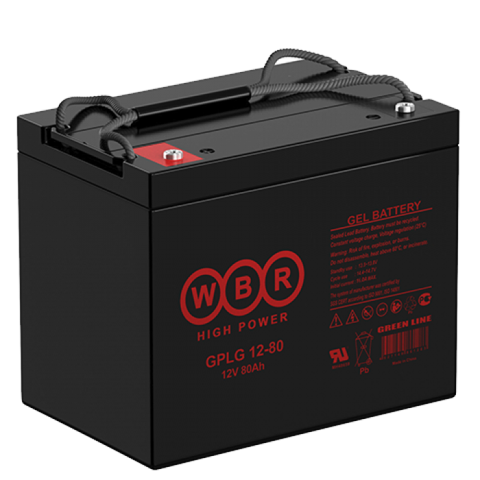 WBR GPLG12-80 - герметизированные, выполненные по гелевой (GEL) технологии, свинцово-кислотные аккумуляторные батареи общего применения со сроком службы 12 лет в буферном режиме или более 350 циклов заряда-разряда в циклическом режиме при 100% разряде. Эти высокоэффективные перезаряжаемые батареи не требуют обслуживания в течение всего срока службы. Основные области применения: источники бесперебойного питания (UPS), охранные и пожарные системы безопасности, оборудование телекоммуникации и электросвязи, аварийное освещение, телеметрическое, контрольное и другое оборудование.