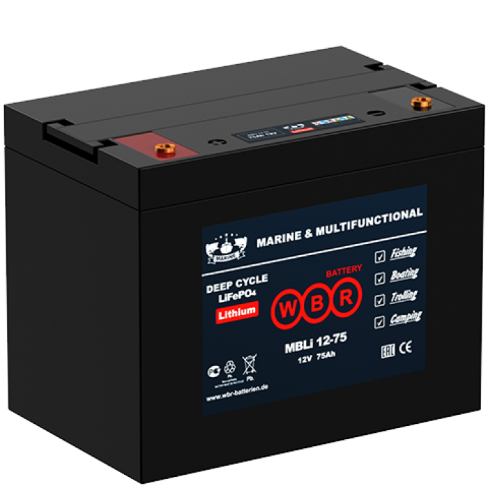 Аккумулятор WBR MBLi12-75 - литий-железо-фосфатные (LiFePO4), обладающие высоким качеством и надежностью, увеличенной в 10 раз цикличностью использования и уменьшенным на 60% весом по сравнению со свинцово-кислотными аккумуляторными батареями. Современная технология производства аккумуляторов с использованием химического взаимодействия углерода и феррофосфата на основе литий-ионных аккумуляторов исключает риск воспламенения или взрыва при сильном ударе, перезаряде или коротком замыкании.