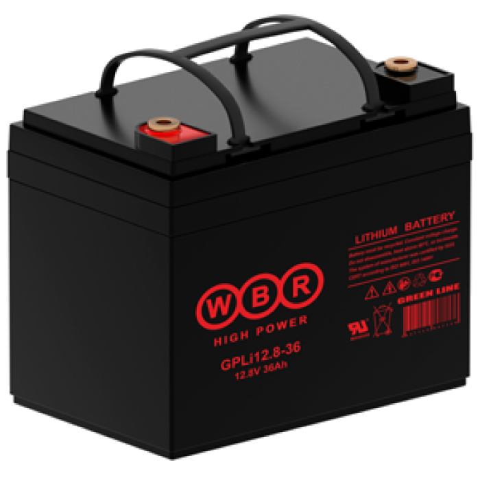 Аккумулятор WBR серии GPLi12.8-36 литий-железо-фосфатные (LiFePO4), обладающие высоким качеством и надежностью, увеличенной в 10 раз цикличностью использования и уменьшенным на 60% весом по сравнению со свинцово-кислотными аккумуляторными батареями. Современная технология производства аккумуляторов с использованием химического взаимодействия углерода и феррофосфата на основе литий-ионных аккумуляторов исключает риск воспламенения или взрыва при сильном ударе, перезаряде или коротком замыкании.