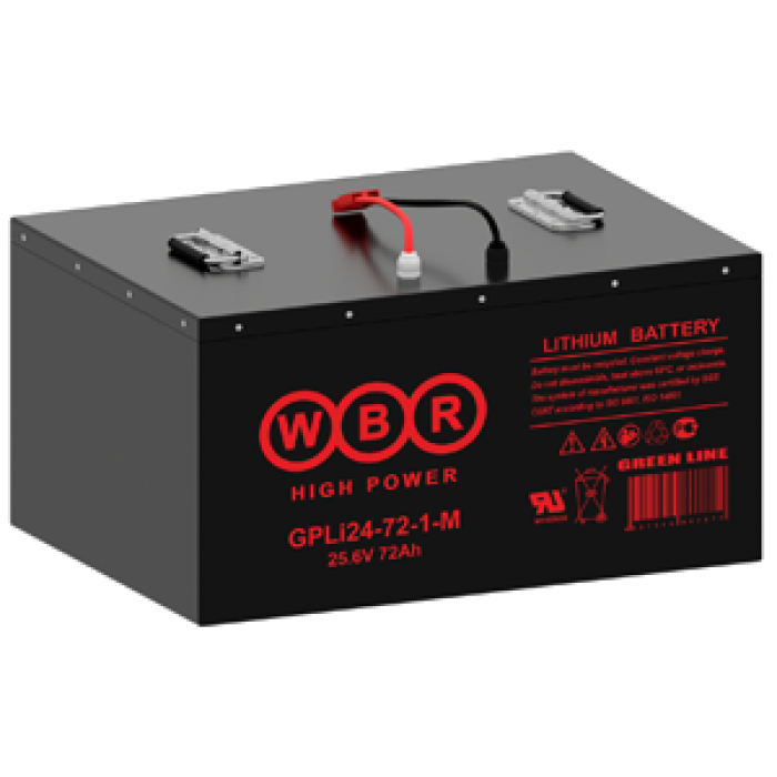 Аккумулятор WBR серии GPLi24-72-1-M литий-железо-фосфатные (LiFePO4), обладающие высоким качеством и надежностью, увеличенной в 10 раз цикличностью использования и уменьшенным на 60% весом по сравнению со свинцово-кислотными аккумуляторными батареями. Современная технология производства аккумуляторов с использованием химического взаимодействия углерода и феррофосфата на основе литий-ионных аккумуляторов исключает риск воспламенения или взрыва при сильном ударе, перезаряде или коротком замыкании.