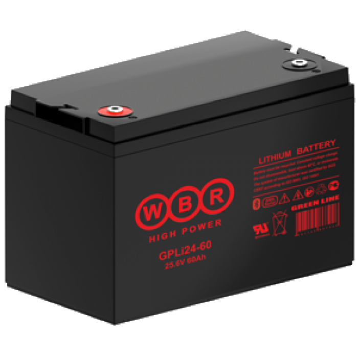 Аккумулятор WBR серии GPLi24-60 литий-железо-фосфатные (LiFePO4), обладающие высоким качеством и надежностью, увеличенной в 10 раз цикличностью использования и уменьшенным на 60% весом по сравнению со свинцово-кислотными аккумуляторными батареями. Современная технология производства аккумуляторов с использованием химического взаимодействия углерода и феррофосфата на основе литий-ионных аккумуляторов исключает риск воспламенения или взрыва при сильном ударе, перезаряде или коротком замыкании.