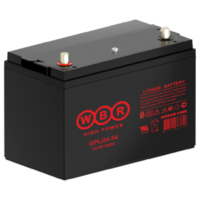 Аккумулятор WBR серии GPLi24-54 литий-железо-фосфатные (LiFePO4), обладающие высоким качеством и надежностью, увеличенной в 10 раз цикличностью использования и уменьшенным на 60% весом по сравнению со свинцово-кислотными аккумуляторными батареями. Современная технология производства аккумуляторов с использованием химического взаимодействия углерода и феррофосфата на основе литий-ионных аккумуляторов исключает риск воспламенения или взрыва при сильном ударе, перезаряде или коротком замыкании.