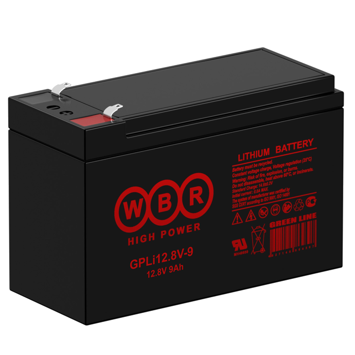 Аккумулятор WBR серии GPLi12.8V-9 литий-железо-фосфатные (LiFePO4), обладающие высоким качеством и надежностью, увеличенной в 10 раз цикличностью использования и уменьшенным на 60% весом по сравнению со свинцово-кислотными аккумуляторными батареями. Современная технология производства аккумуляторов с использованием химического взаимодействия углерода и феррофосфата на основе литий-ионных аккумуляторов исключает риск воспламенения или взрыва при сильном ударе, перезаряде или коротком замыкании.