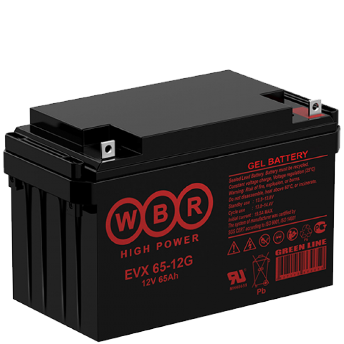 Аккумулятор WBR EVX65-12G- герметизированная, выполненная по гелевой (GEL) технологии, тяговая свинцово-кислотная аккумуляторная батарея. Обладает высоким качеством и надежностью, устойчива к глубоким разрядам и применяется для питания электрических транспортных средств, гольфкаров, газонокосилок, полотерных и поломоечных машин, медицинских колясок, электроинструмента, электронасосов, эхолотов, осветительных приборов, в том числе наружного освещения и другой техники.