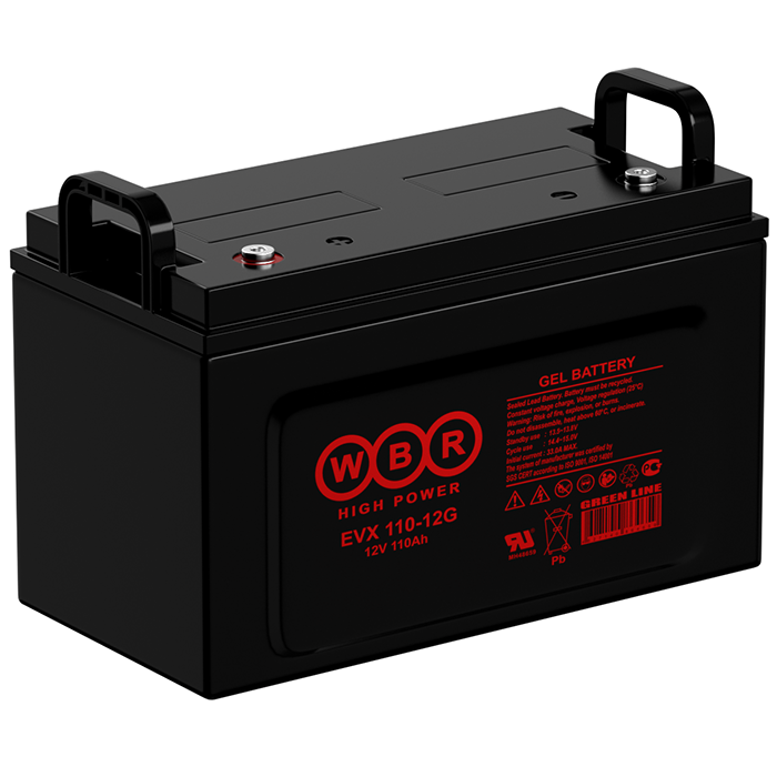 Аккумулятор WBR EVX110-12G - герметизированная, выполненная по гелевой (GEL) технологии, тяговая свинцово-кислотная аккумуляторная батарея. Обладают высоким качеством и надежностью, устойчивы к глубоким разрядам и применяются для питания электрических транспортных средств, гольфкаров, газонокосилок, полотерных и поломоечных машин, электронасосов, осветительных приборов, в том числе и наружного освещения, и другого вспомогательного оборудования.