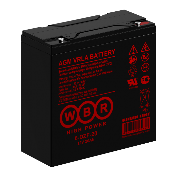 Аккумулятор WBR 6-DZF-20 - герметизированный, выполненный по AGM-технологии, тяговая свинцово-кислотная аккумуляторная батарея. Обладают высоким качеством и надежностью, устойчивы к глубоким разрядам и применяются для питания электрических транспортных средств, гольфкаров, газонокосилок, полотерных и поломоечных машин, медицинских колясок, электронасосов, осветительных приборов, в том числе и наружного освещения, и другого вспомогательного оборудования.