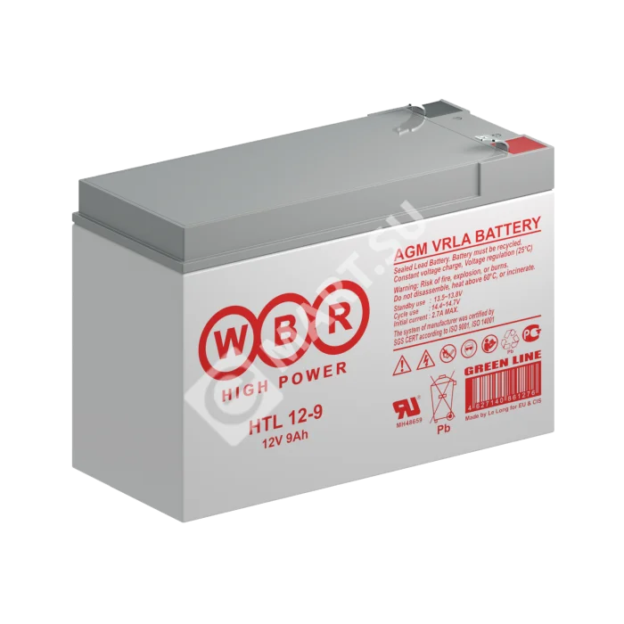 Аккумуляторы WBR серии HTL12-9 - герметизированные, выполненные по технологии AGM, свинцово-кислотные аккумуляторные батареи общего применения с увеличенным до 15 лет сроком службы в буферном режиме при 20 °С. Эти высокоэффективные перезаряжаемые батареи не требуют обслуживания в течение всего срока службы. Основные области применения: источники бесперебойного питания (UPS), оборудование систем телекоммуникации и электроэнергетики, аварийное освещение, освещение пешеходных переходов и светофоры на солнечных батареях, системы «умного дома» для жарких регионов, в которых оборудование работает при высоких температурах.