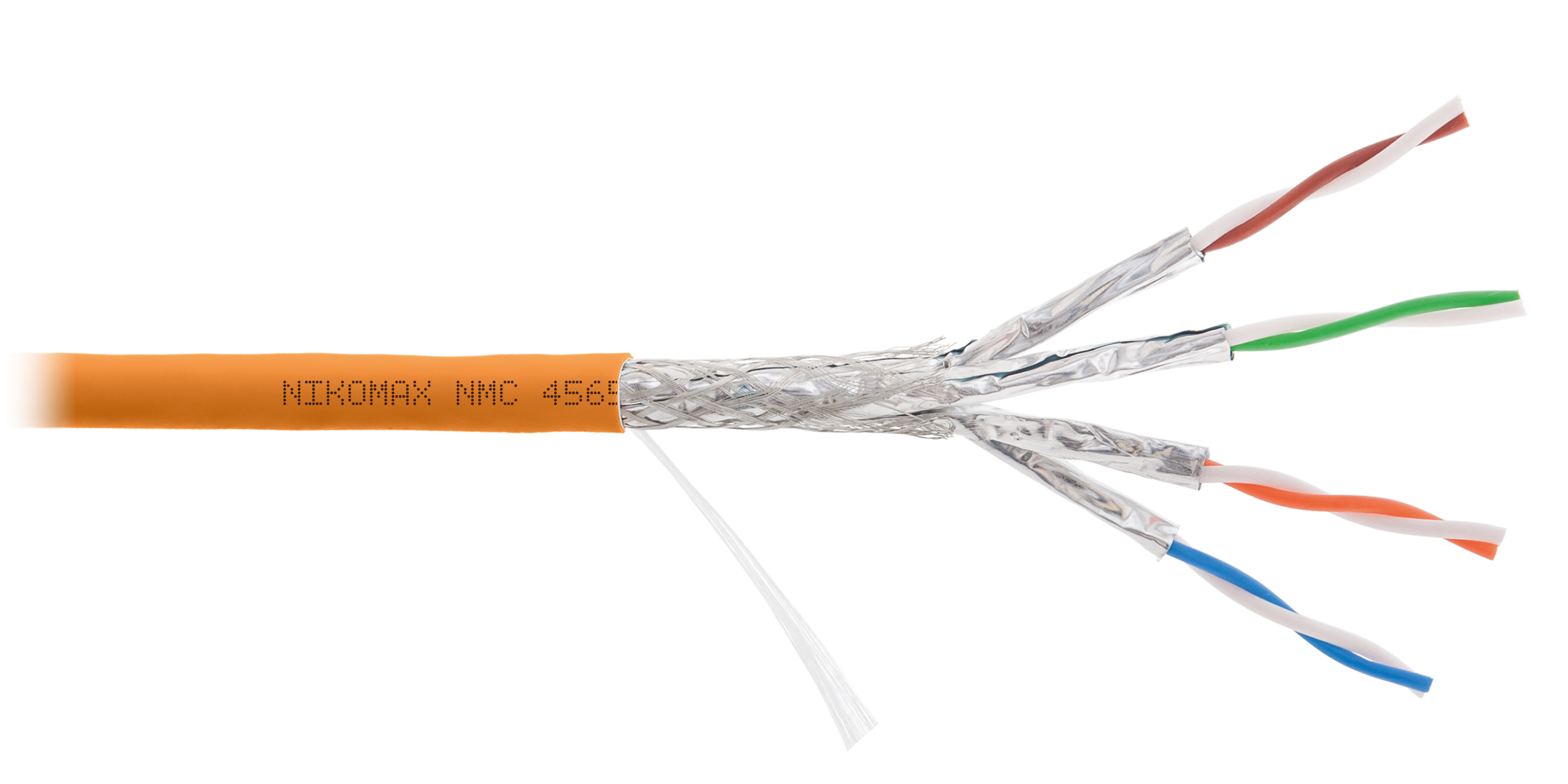 Кабель NIKOMAX S/FTP 4 пары, Кат.7 (Класс F), тест по ISO/IEC, 600МГц, одножильный, BC (чистая медь), 23AWG (0,56мм), полимерный материал нг(А)-HF, внутренний, оранжевый, 500м - гарантия: 5 лет /15 лет системная