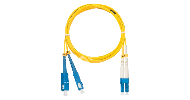 Шнур NIKOMAX волоконно-оптический, переходной, одномодовый 9/125мкм, стандарта OS2, SC/UPC-LC/UPC, двойной, полимерный материал нг(A)-HF, 2мм, желтый, 5м