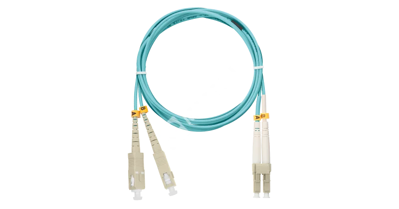 Шнур NIKOMAX волоконно-оптический, переходной, многомодовый 50/125мкм, стандарта OM3, SC/UPC-LC/UPC, двойной, полимерный материал нг(A)-HF, 2мм, аква, 3м