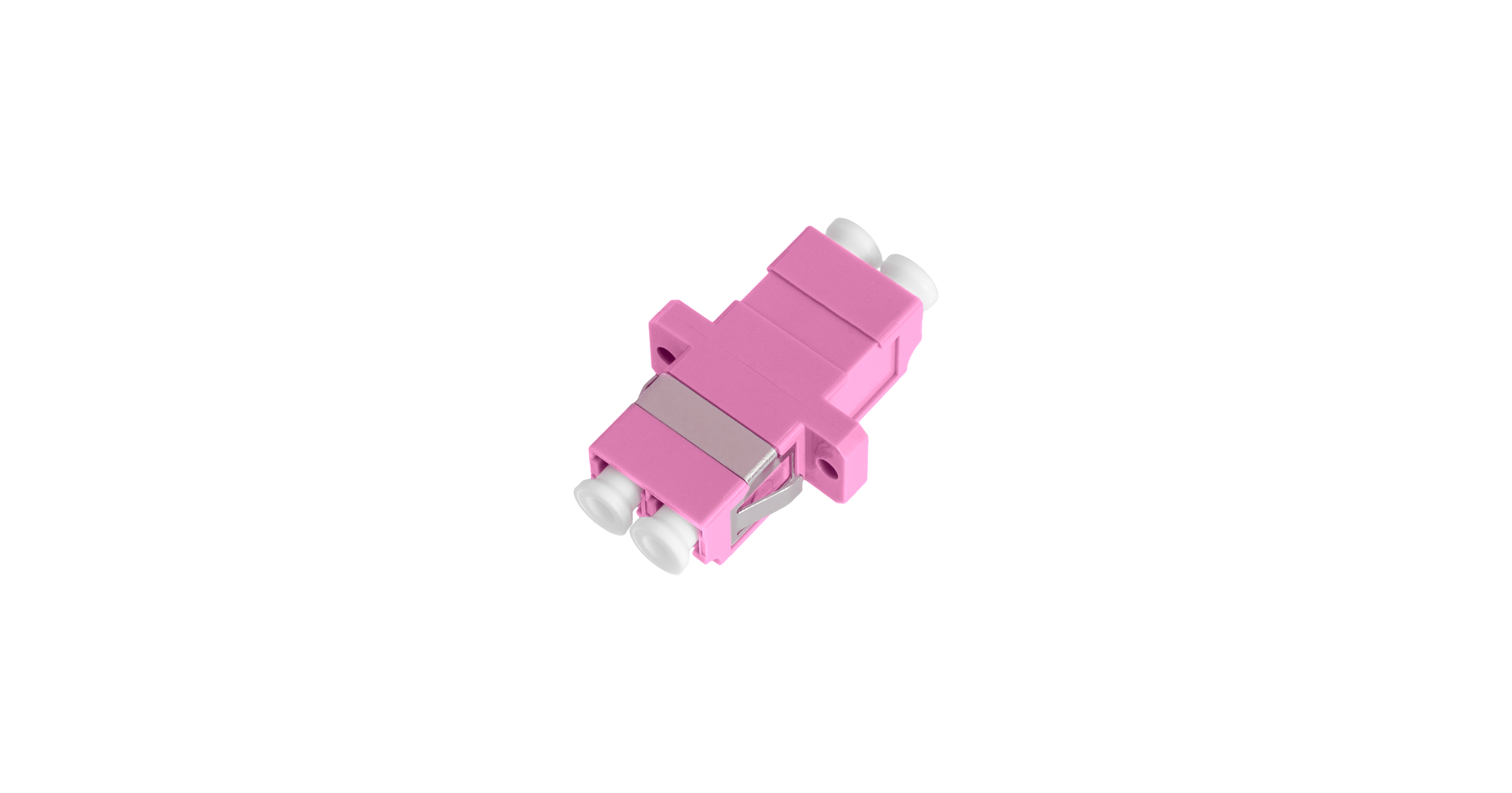 Адаптер NIKOMAX волоконно-оптический, соединительный, многомодовый, стандарта OM4, LC/UPC-LC/UPC, двойной, пластиковый, без шторки, с фланцами, маджента, уп-ка 2шт.
