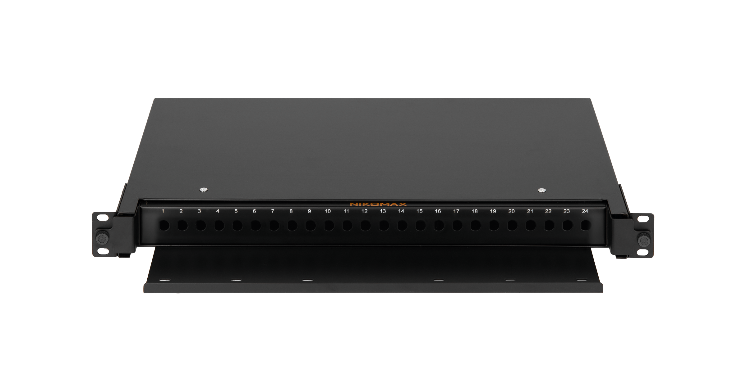 Оптический кросс NIKOMAX 19", 1U, до 24 FC/ST портов, выдвижной, со съёмной полкой, черный, в комплекте: сплайс-кассета и КДЗС