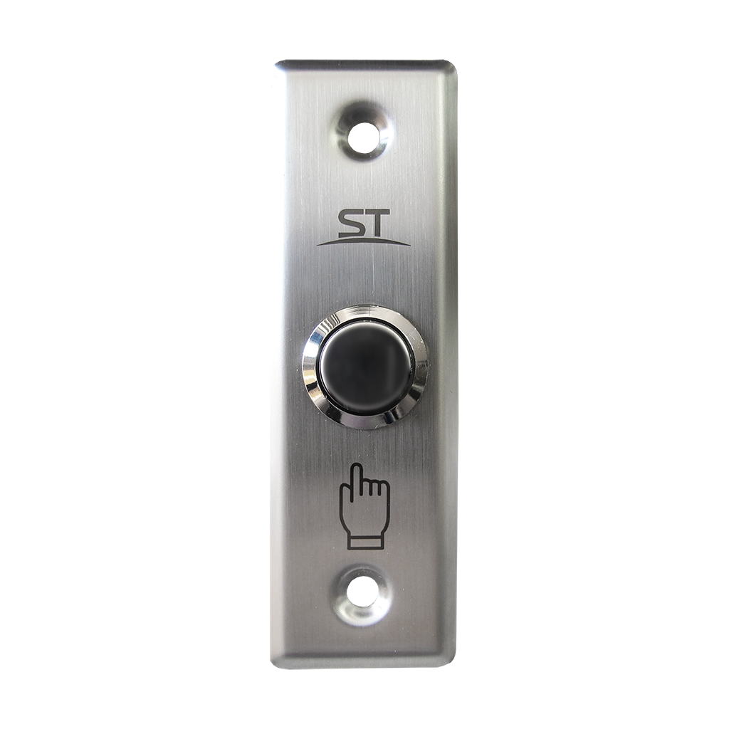 Кнопка выхода механическая; тип контактов: COM/NO (не более DC 36В/3A). Материал корпуса нержавеющая сталь. Врезной монтаж. -35...+55°С, IP40, 91х28х16 мм.