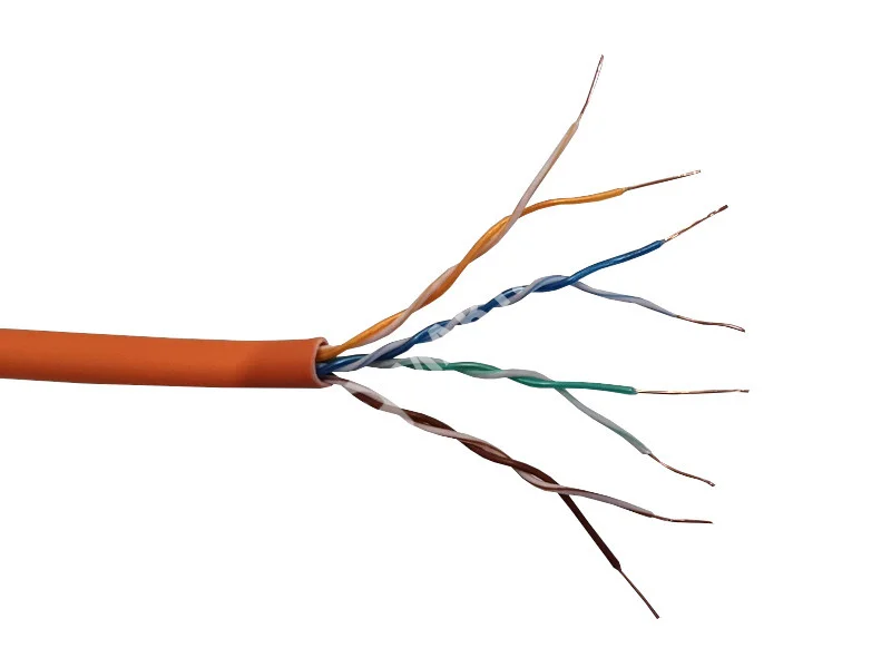 Кабель производства Россия, входит в Реестр российской промышленной продукции Кабель витая пара UTP 4 применяется в системах СКС при при прокладке внутри зданий. Предназначены для использования в высокоскоростных системах передачи данных со скоростью до 1Гбит/с. Кабель соответствует стандартам ГОСТ 31565-2012, ГОСТ Р 54429-2011 и ИСО/МЭК 11801 Проходит Fluke тест на 100м Огнестойкость: UL VW-1, IEC-332.1 Разрывная нить: отсуствует Технические характеристики: Проводник, d: медь (Cu), 0,52, одножильный Внешний d кабеля: 5,8 - 6,0 мм Тип и цвет оболочки кабеля: ZH нг(A)-HF, оранжевый Применение: для внутренних работ Бухта: 305 м Проходит Fluke тест на 100 метрах Относительная скорость распространения сигнала (NVP): 72% Диапазон частот: 1-100 МГц Волновое сопротивление, Ом: 100 + -15 Дисбаланс сопротивления 5% Диапазон температур °С: Хранение: от -40 до +60 Прокладка: от 0 до +60 (при этом до начала прокладки кабель должен находиться в помещ