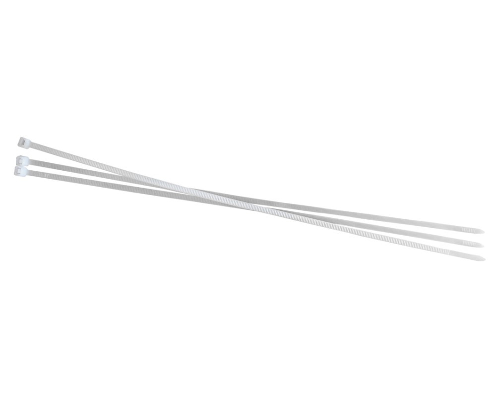 Допускается отклонение в размерах в пределах +/-3% Длина: 350мм Ширина: 4,6мм Прочность на разрыв (кг): 22 Упаковка: 100 шт. Цвет: белый Диапазон температур: эксплуатация от -35С до +85 С хранение от 0С до +40 С, при влажности от 50 до 70% (перед началом монтажа стяжки должны находиться в таких же условиях не менее 24 часов) Стяжки должны храниться вдали от обогревательных и отопительных приборов. рекомендуемая температура монтажа от +5С до +50 С Диаметр обхвата проводов и кабелей: от 3 до 90 мм Материал: нейлон 66 Замковый механизм одностороннего хода. Неразъемный