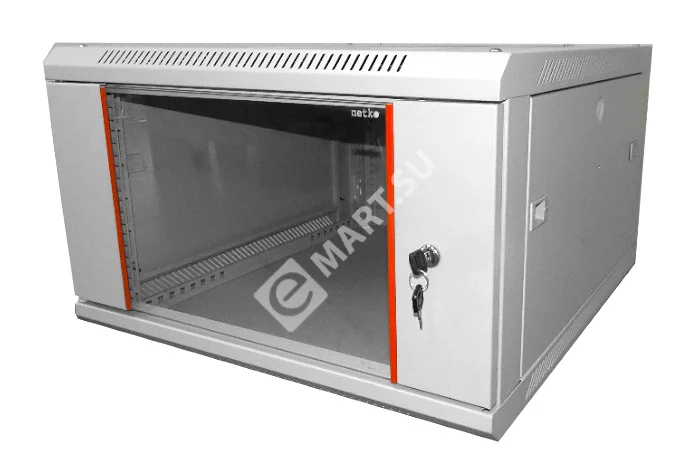 Netko Шкаф настенный 6U серия WM (600х650х370), передняя дверь стекло, разборный, серый