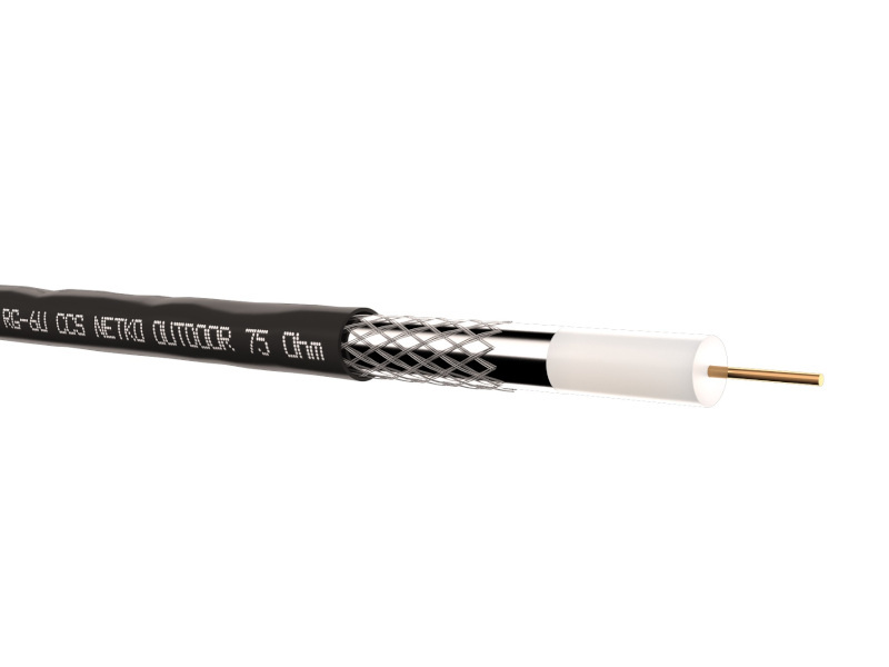 –Netko Кабель коаксиальный RG-6U, 75 Ом (CCS, оплетка 32 нити AL), наружный, черный (100м) Optima