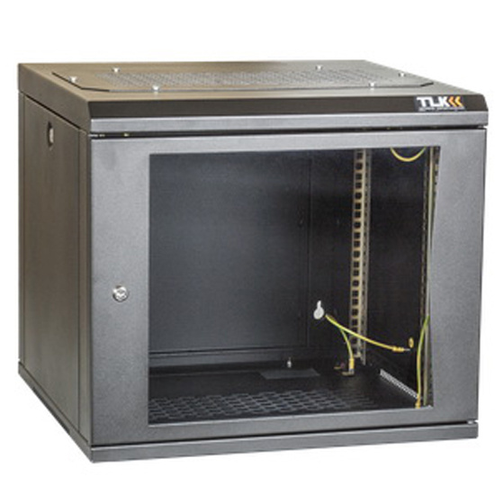 Настенный разборный шкаф TLK 19", 12U, стеклянная дверь, Ш600хВ569хГ450мм, 1 пара монтажных направляющих, черный..