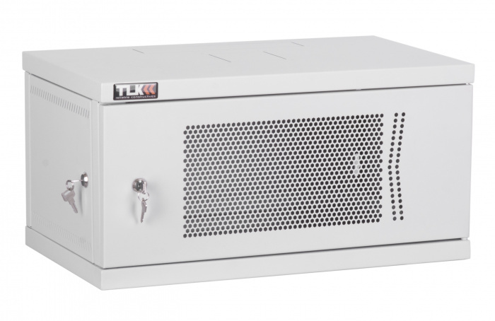 Настенный разборный шкаф TLK 19", 9U, перфорированная дверь, Ш600хВ436хГ600мм, 2 пары монтажных направляющих, серый..