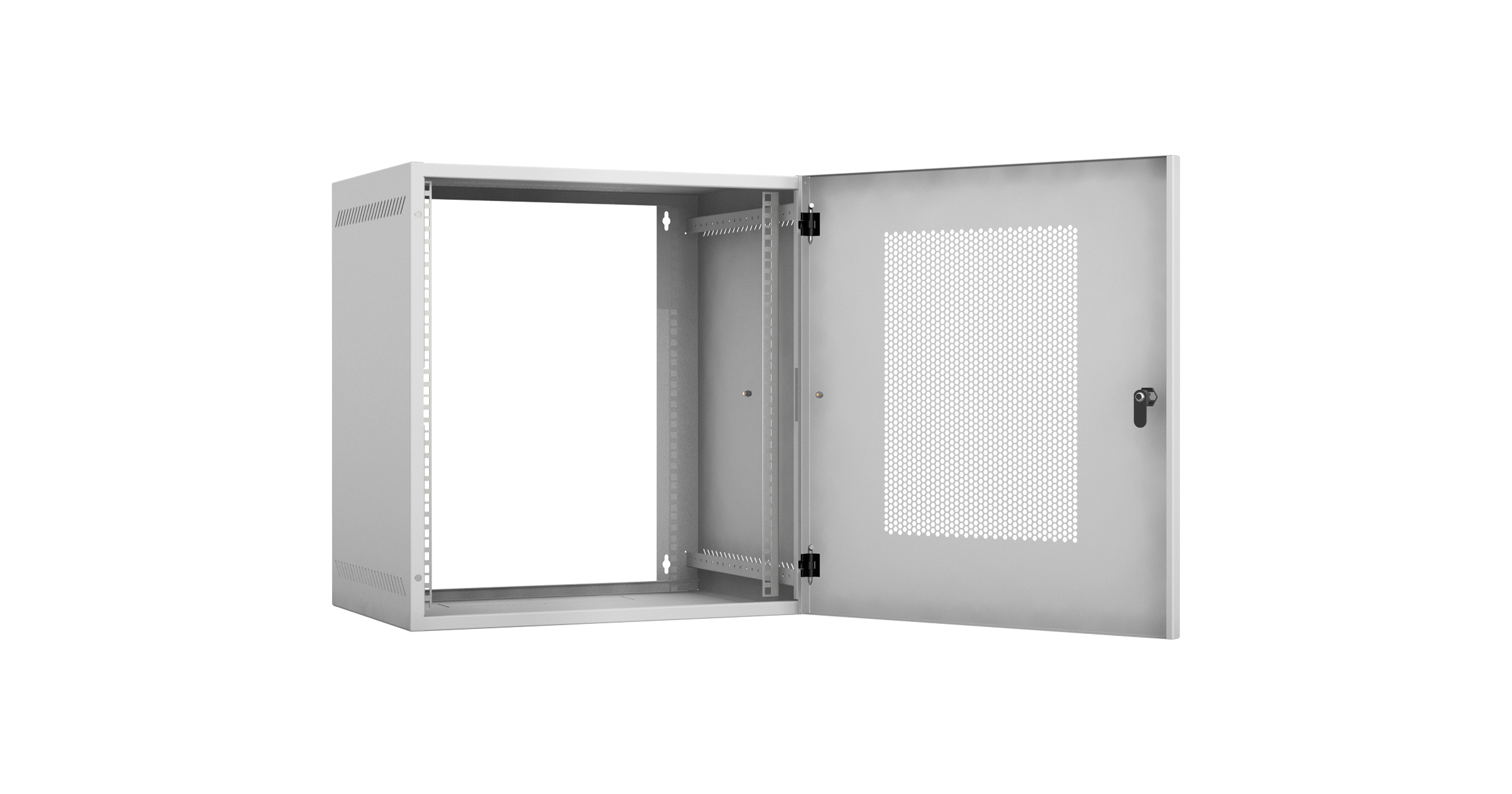 Настенный шкаф 19", 12U, перфорированная дверь, Ш540хВ573хГ400мм, 1 пара монтажных направляющих, сварной, серый